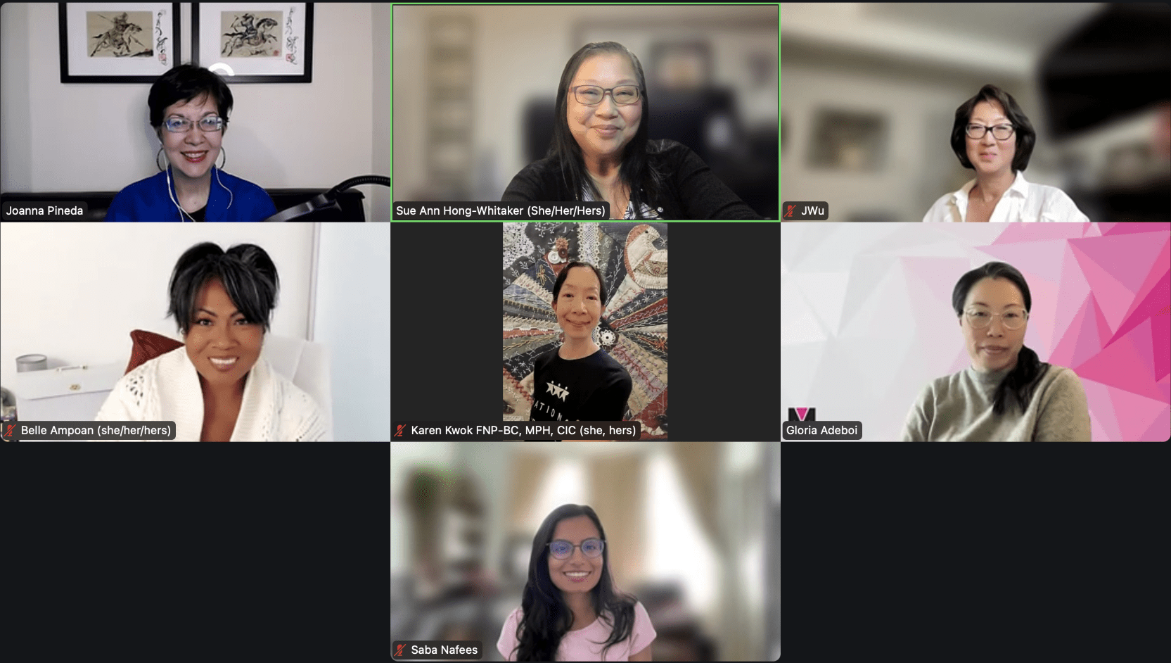 • Fostering a safe environment to discuss and share issues and challenges faced by anyone who identifies themselves as AANHPI women.